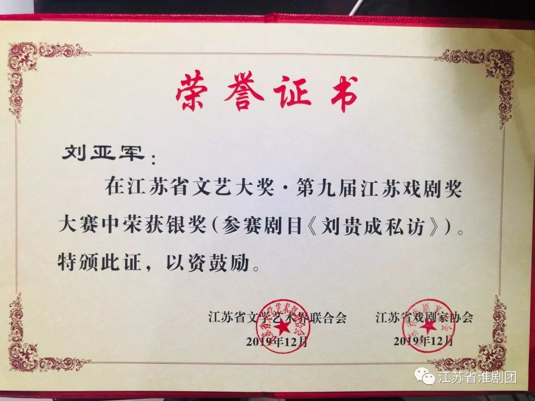 本屆江蘇省文藝大獎(jiǎng)·戲劇獎(jiǎng)于8月至12月舉行,共有11地市192名選手報(bào)名參賽。經(jīng)過(guò)初評(píng)、復(fù)評(píng)以及最后的決賽,共36名青年演員脫穎而出,分別獲得金銀銅獎(jiǎng)。祝賀江蘇省淮劇團(tuán)青年演員張泠、劉亞軍獲得第六屆江蘇戲劇獎(jiǎng)銀獎(jiǎng),江蘇省淮劇團(tuán)青年演員王登洲獲得第六屆江蘇戲劇獎(jiǎng)銅獎(jiǎng)。