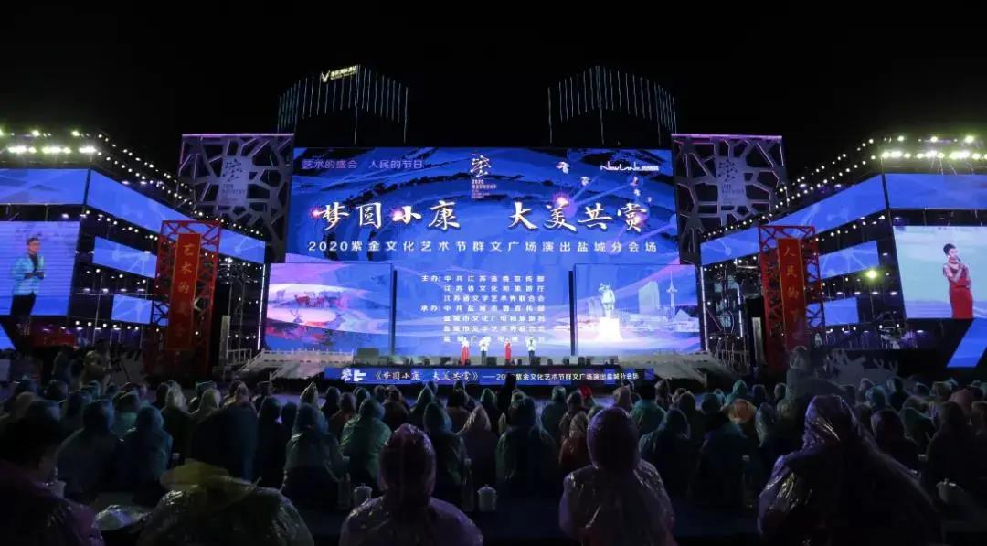 10月15日晚,由中共江蘇省委宣傳部、江蘇省文化和旅游廳、江蘇省文學(xué)藝術(shù)界聯(lián)合會共同主辦,中共鹽城市委宣傳部、鹽城市文化廣電和旅游局、鹽城市文學(xué)藝術(shù)界聯(lián)合會、鹽城廣播電視總臺承辦,鹽城市演藝集團(tuán)、鹽南高新區(qū)宣傳信息和融媒體中心、鹽城市鹽南文旅發(fā)展有限公司、鹽城工業(yè)職業(yè)技術(shù)學(xué)院、江蘇醫(yī)藥職業(yè)學(xué)院、鹽城幼兒師范高等?茖W(xué)校聯(lián)合協(xié)辦的“夢圓小康·大美共賞”2020 紫金文化藝術(shù)節(jié)群文廣場演出在新弄里大舞臺勁爆演出。